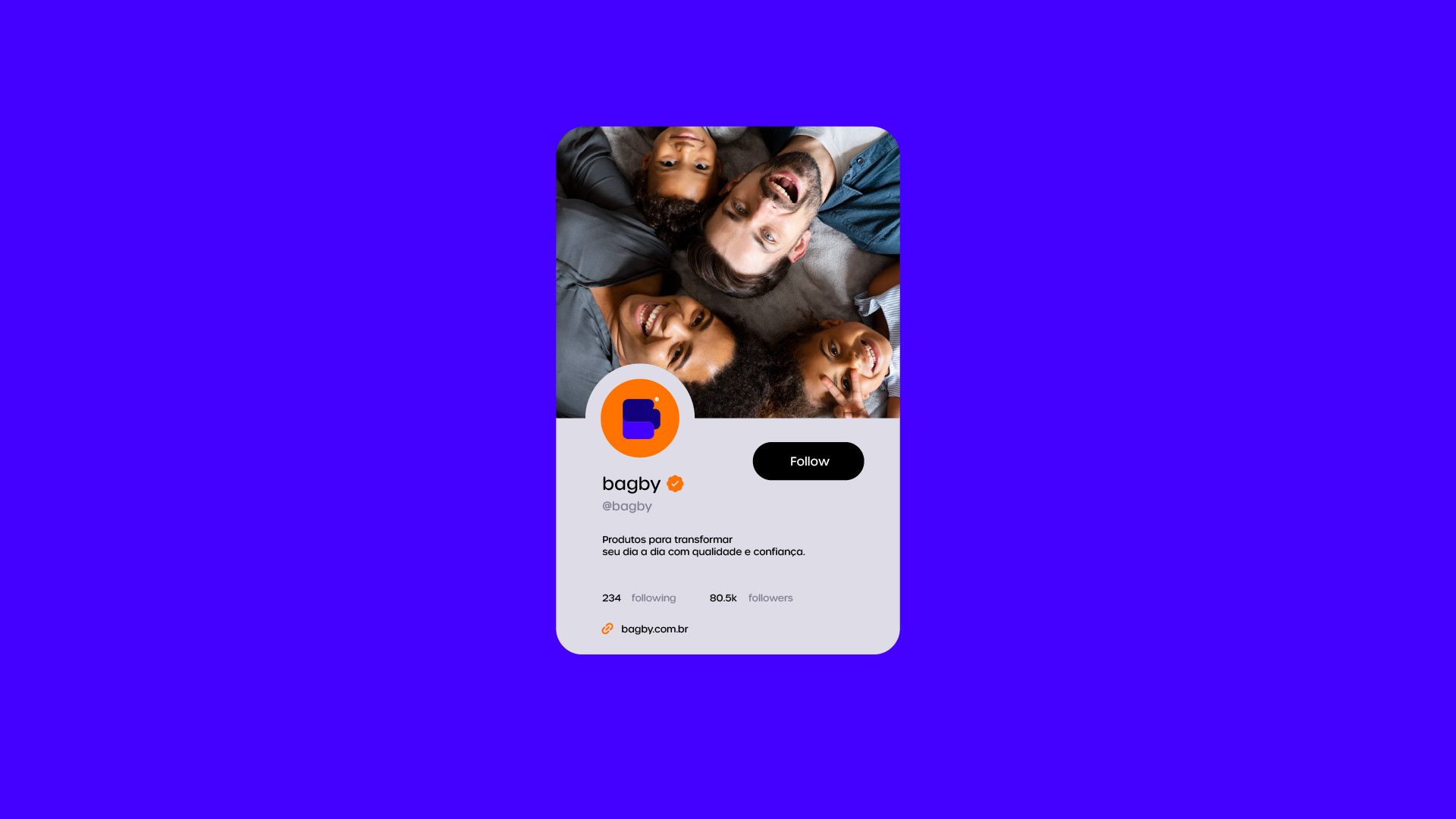 A identidade visual da Bagby reflete exatamente essa proposta: próxima, otimista e funcional. O laranja vibrante transmite calor e energia, enquanto o azul profundo equilibra com confiança e solidez. O símbolo, com formas arredondadas e modernas, remete à ideia de acolhimento — quase como um abraço visual. Já a tipografia é amigável e descomplicada, tornando a marca ainda mais acessível.