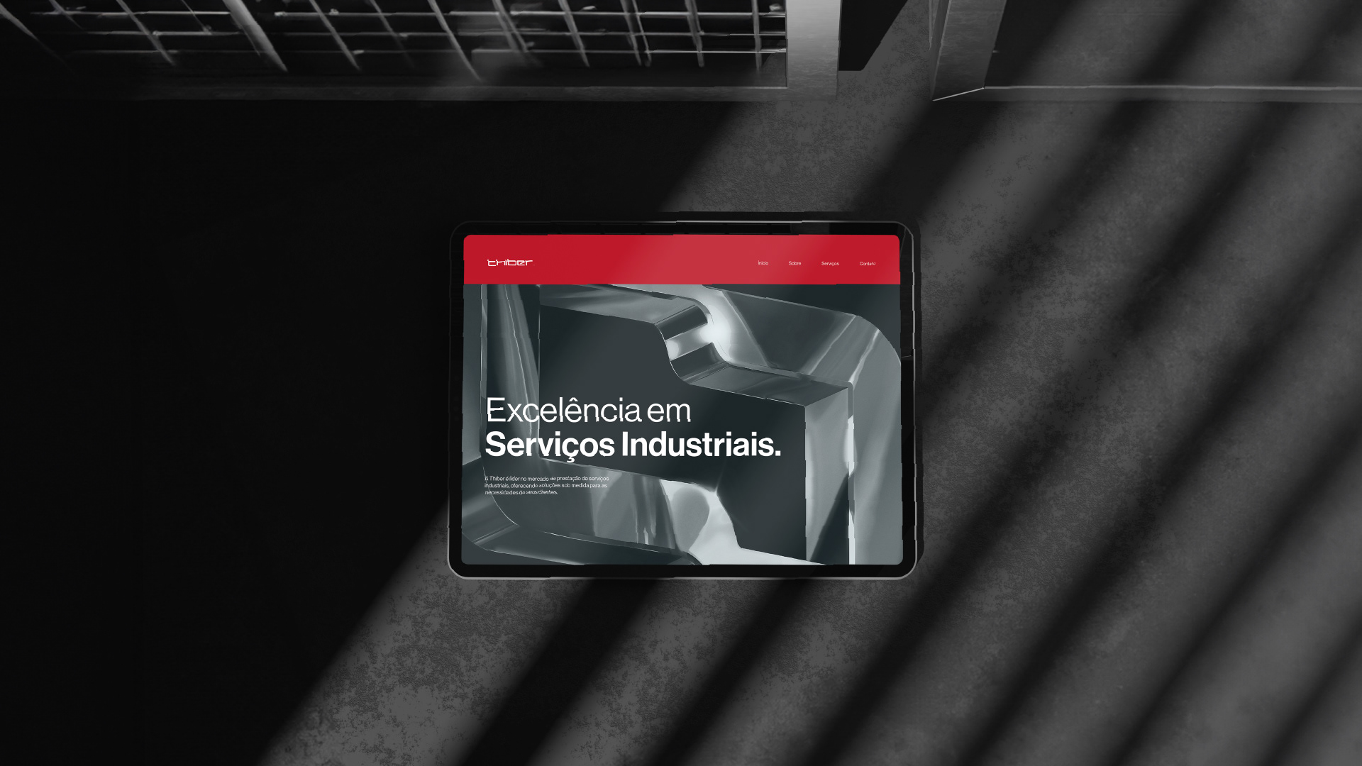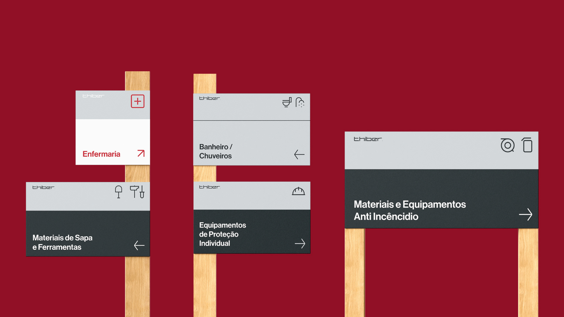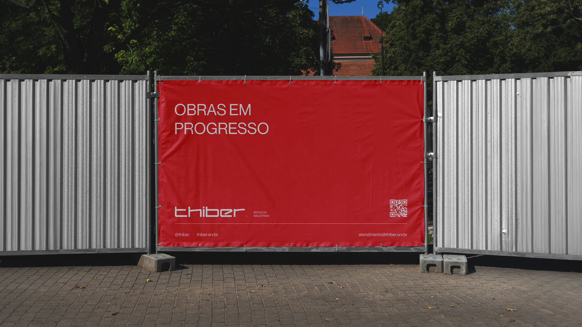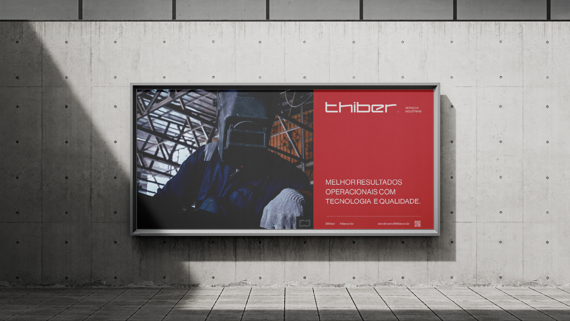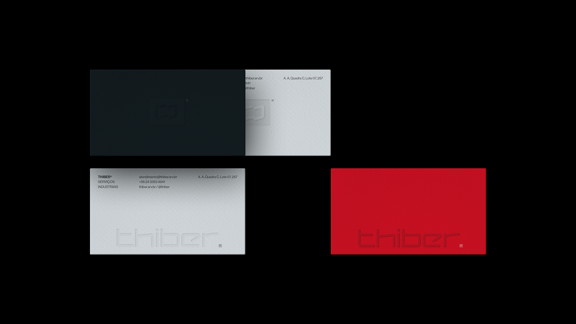 A escolha do vermelho como cor principal não foi estética, foi estratégica: ele se tornou uma assinatura visual que garante reconhecimento imediato em um segmento marcado por sinais visuais intensos. Como os serviços da Thiber estão presentes em ambientes industriais, onde a marca é constantemente exposta — em uniformes, veículos, placas, estruturas metálicas —, o vermelho funciona como um ponto de contato direto com o cliente. Ele comunica segurança, energia e prontidão, reforçando a confiança na atuação da empresa.